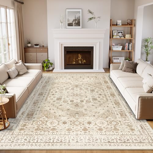 Capslpad tvättbara mattor vardagsrum 200 x 300 cm slitna vintage mattor halkskydd traditionell orientalisk sovrumsmatta låg lugg tunn golvmatta matta för matsal kök kontorsdekor, beige
