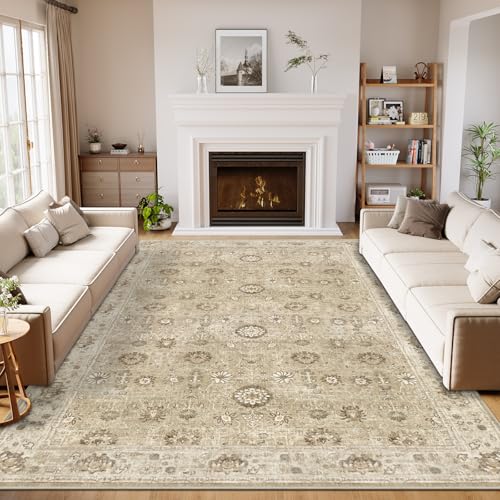 Capslpad tvättbara mattor vardagsrum 200 x 300 cm slitna vintage mattor halkskydd traditionell orientalisk sovrumsmatta låg lugg tunn golvmatta matta för matsal kök kontorsdekor, beige brun