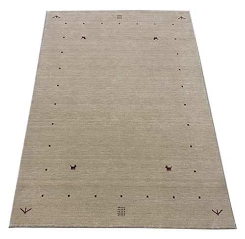 Gabbeh beige matta 100% ull handvävd orientalisk matta Loom Lori (120 x 180 cm, beige T3)