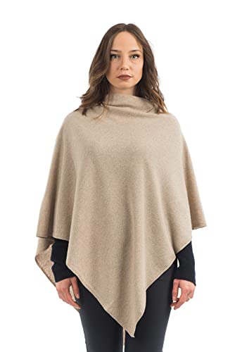 DALLE PIANE CASHMERE - 100% kashmir poncho | Tillverkad i Italien | Certifierad Tfashion-spårbarhet | Lätt och varm | Passar alla kroppsbyggnader, Beige, En storlek, Kashmir
