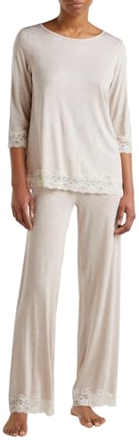 Schiesser Selected Premium plagg för kvinnor, lång tvådelad pyjamas, Beige (färg 411), 48