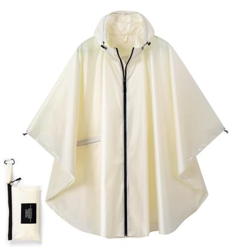 POWINSUN Mode regnponcho med huva vattentät regnjacka med ficka för kvinnor/män/vuxna, BEIgE, one size