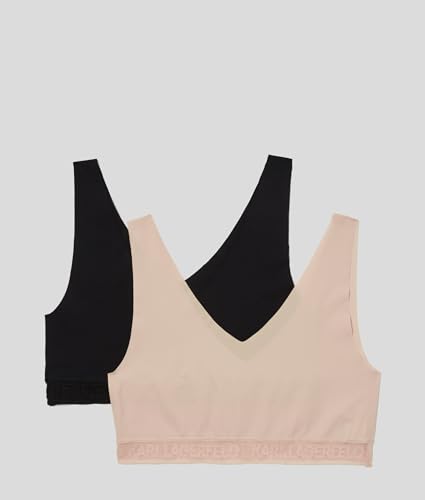 KARL LAGERFELD Dam Ultralight Logo Bralette (Set med 2), Svart/Beige, L