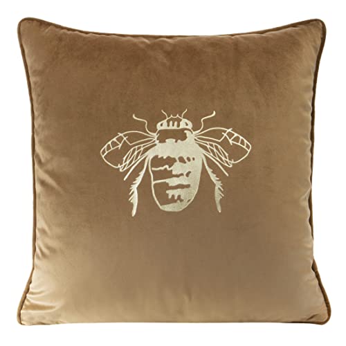 Elegant sammetsörngott dekorativ kudde med tryck 45 x 45 cm överdrag sammet örngott mjuk soffkudde, gyllene bi/kant, mörk beige
