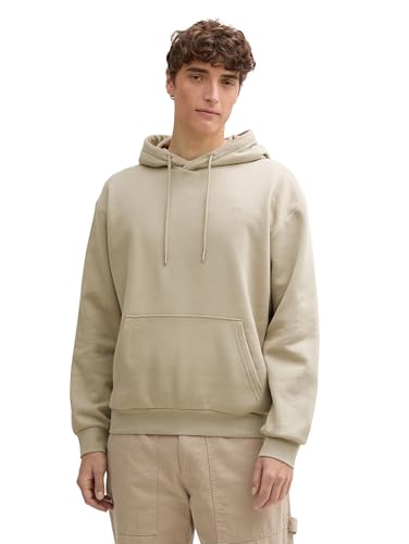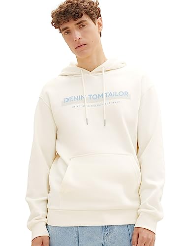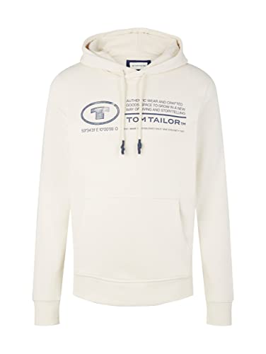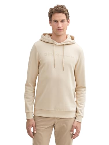 TOM TAILOR Denim herr huvtröja sweatshirt med logotyptryck, 10338-soft ljus beige, XL