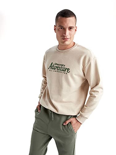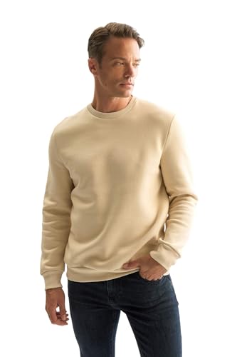 DeFacto Långärmad tröja herr – rund hals sweatshirt för herr, Beige, M