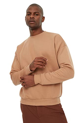 Trendyol Herr rund hals vanlig vanlig sweatshirt, beige, L, BEIgE, L