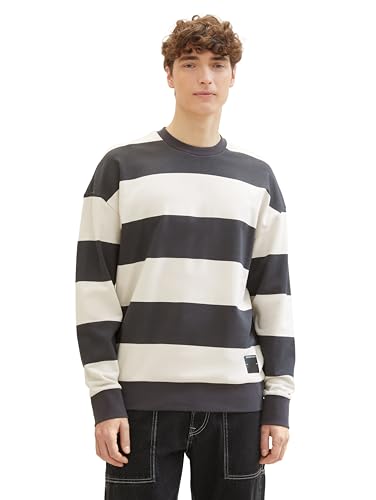 TOM TAILOR Denim herr sweatshirt, 35101 – Coal Grey Beige Big Stripe, XS