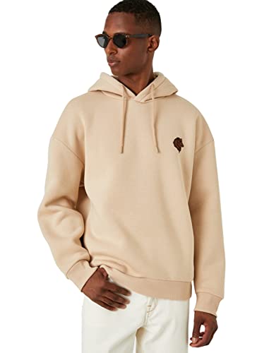 Koton Gesticktes Kapuzen-sweatshirt träningströja, beige (057), M herr, Beige (057), M