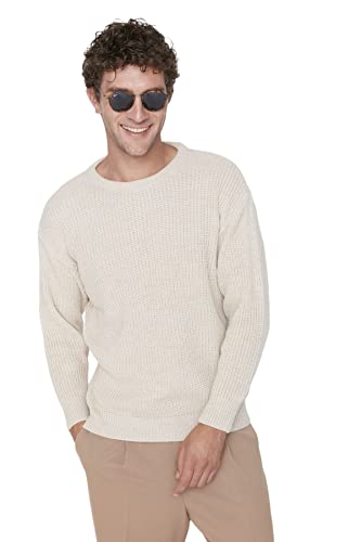 Trendyol Herr rund hals kabelstickad smal tröja sweatshirt, beige, L, BEIgE, L