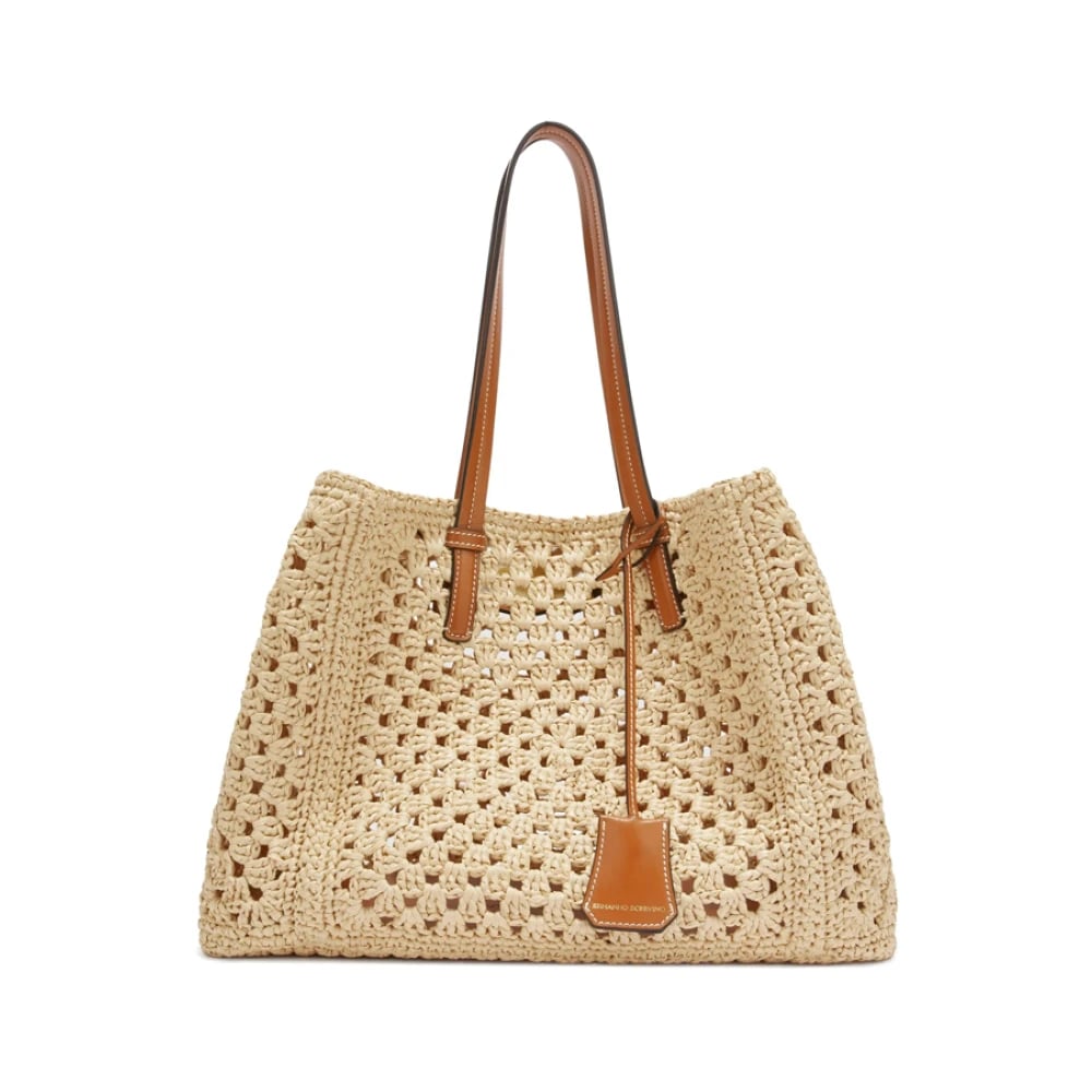 Ermanno Scervino, Väskor , Dam, ONE Size, Beige Virkad Tygväska med Logotyp