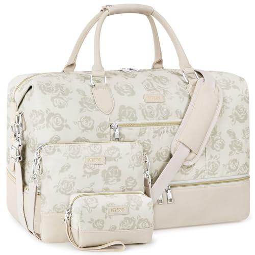 Helgväska för kvinnor, duffelväska handbagage övernattningsväska med skofack stor nylon resa helg tygväska, 4-beige blomma, L, Helgväska för kvinnor, duffelväska handbagage övernattningsväska med