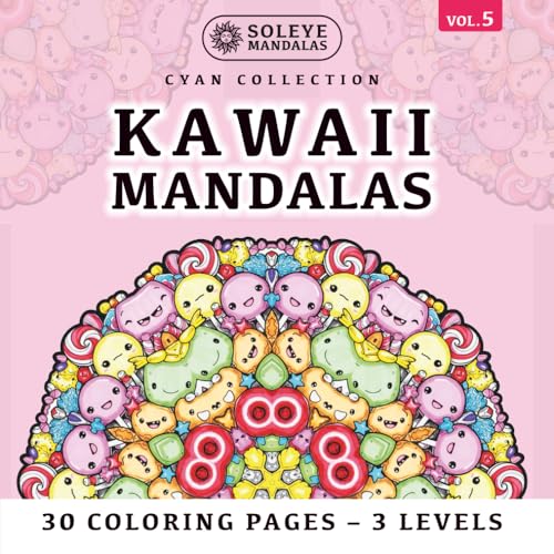 Kawaii Mandalas: 30 Cute Coloring Pages for Active Meditation: A Visual Well-being Experience in 3 Complexity Levels | Designed for Right & ... Square Format | Cyan Collection Volume 5