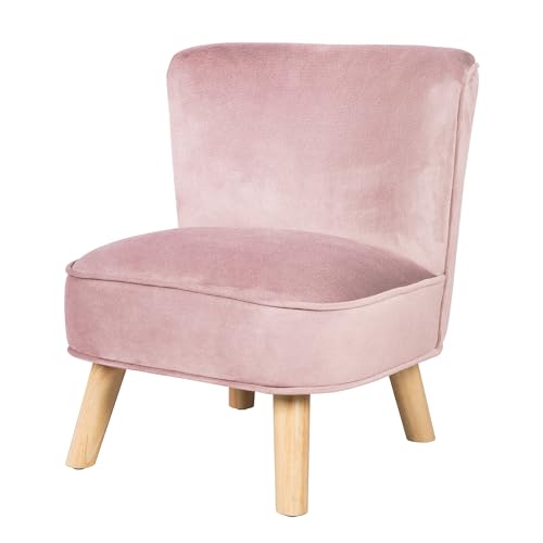 roba Barnfåtölj Lil Sofa - Bekväm fåtölj för flickor & pojkar - Stabila träben - för baby- & barnrum - Sammetstyg - Rosa