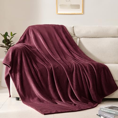 BEAUTEX Fleecefilt för soffa eller sängöverkast, mjuk luddig plyschfilt, lyxig flanell knäfilt, supermysig och bekväm för alla årstider (vin, 127 cm x 152 cm)