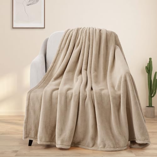 BEAUTEX Fleecefilt för soffa eller sängöverkast, mjuk luddig plyschfilt, lyxig flanell knäfilt, supermysig och bekväm för alla årstider (elfenben, 127 cm x 152 cm)