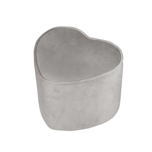 roba barnpall i hjärtform Lil Soffa för pojkar och flickor, bekväm pall täckt med grått sammetstyg, puff från barnens sittmöbelserie Lil Sopa för barn- eller babyrum