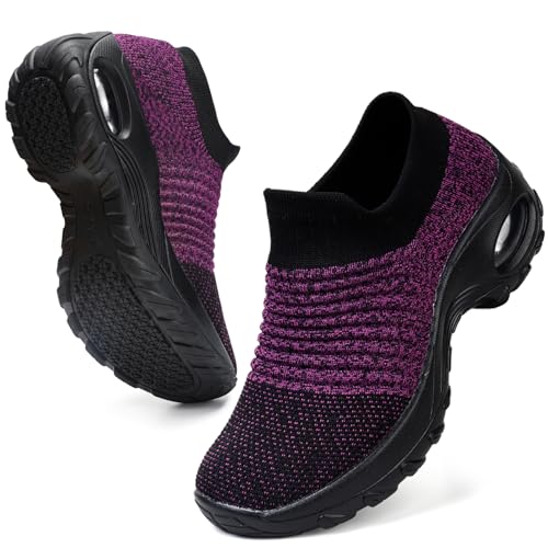 HKR Dam Slip-on Skor Bekväma Tränare Arch Stöder Promenadskor Lätta Arbetskorn Svart Lila 40.5 EU