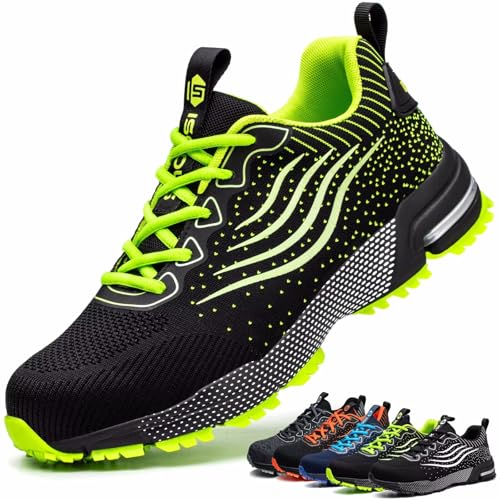 Säkerhetsskor Herr Dam Arbetsskor Män Kvinnor Stål Toe Cap Trainers Skyddsskor Sportskor Andningsbara Industriella Skor Lätta Bekväma Stålhätta Unisex Grön 45