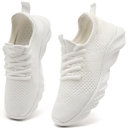 Giniros Herr dam slip-on träningsskor vardagliga träningsskor skor andningsbara löparskor promenadsneakers lätta tennisskor mjuka bekväma nät gym träning sneakers, Vitt, 41.5 EU