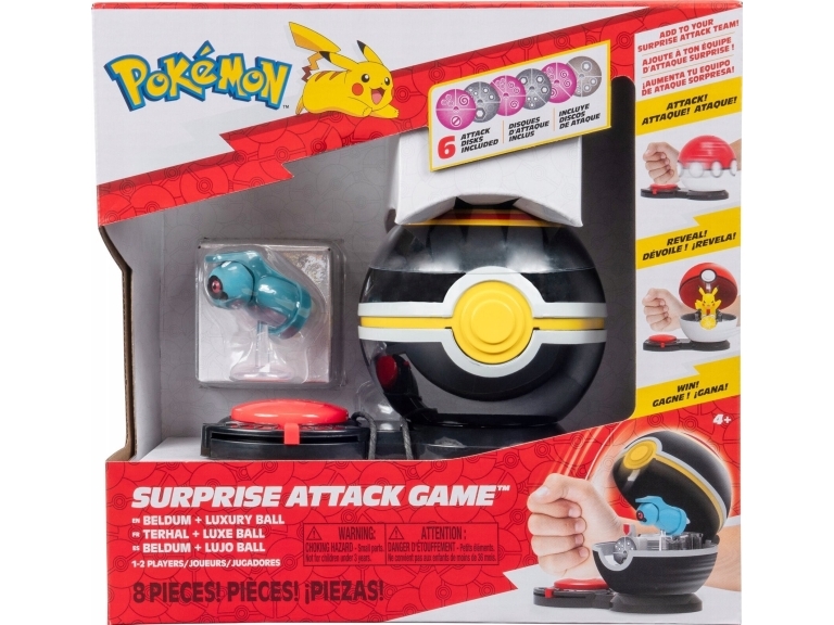 Pokemon Game, Pokemon Surprise Attack Game Single-Pack Beldum with stand with Luxury Ball - Psychic & Steel Disks - W5