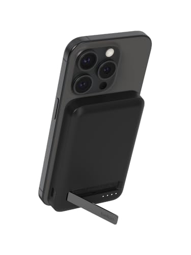 Belkin BoostCharge Pro trådlös powerbank 5000mAh med Qi2, MagSafe-kompatibel bärbar laddare + inbyggt utfällbart stöd, magnetisk powerbank för iPhone 16, iPhone 15, 14, 13, m.fl. - svart
