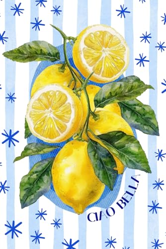Ciao Bella Lemon Journal – Cute Blue & White Striped Notebook | Italian-Inspired Fruit Design | 150 Lined Pages | Italian Travel Stationary