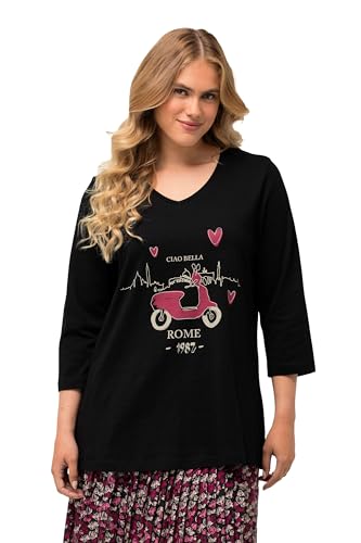 Ulla Popken Dam Ciao Bella Print, Classic T-shirt, svart, 50-52