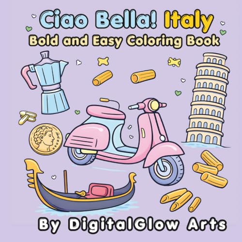 Ciao Bella! Italy Bold and Easy Coloring Book: Cute Illustrations of Italian Culture and Cozy Aesthetic Elements