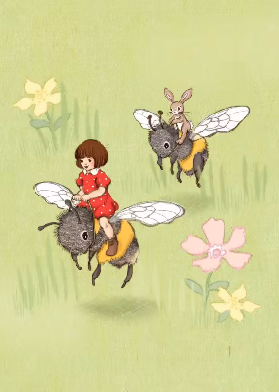 Enkelt Kort - Belle & Boo - Humlor, blommor och barn (Fraktfritt)