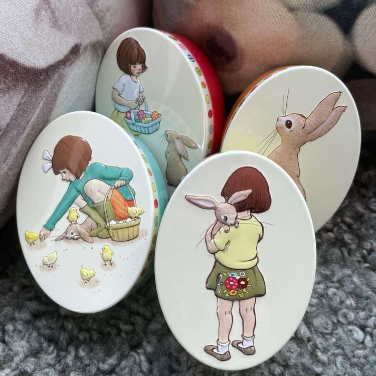 Påskäggsburkar (plåt) - Belle & Boo -10,5 cm (4 olika motiv att välja bland): Krama kaninen