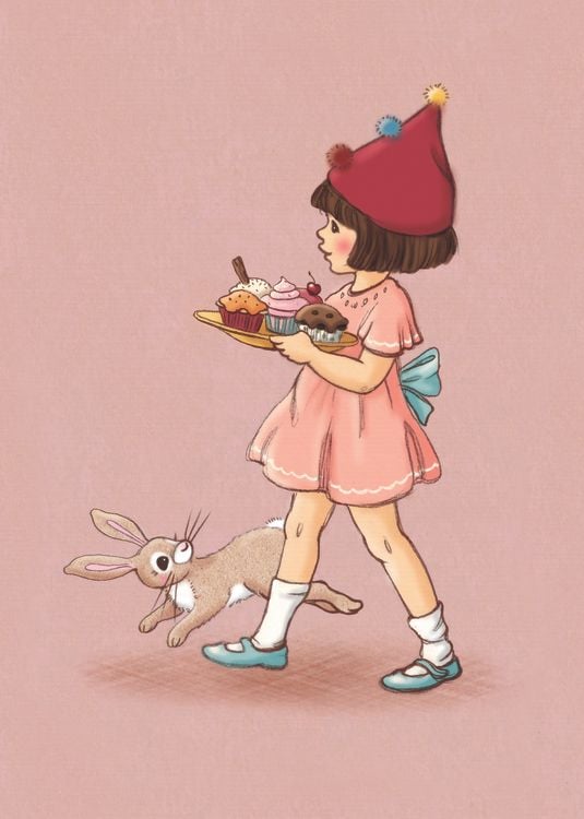 Enkelt Kort - Belle & Boo - Flickan och blomsterkorgen (Fraktfritt)