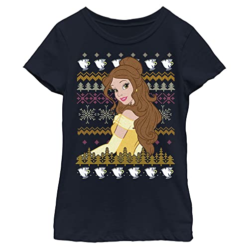 Disney Princesses Belle Ugly jultröja flickor t-shirt, marinblå blå, X-Small, marinblå, XS