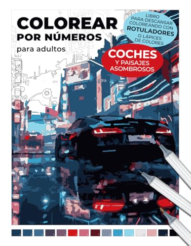 Colorear por números para adultos: coches y paisajes asombrosos | Libro para descansar coloreando con rotuladores o lápices de colores: Relájate y disfruta de la belleza automotriz y escénica