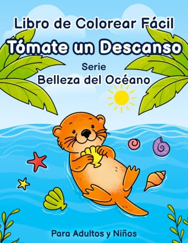 Tómate un descanso: Libro de colorear fácil para adultos y niños, Serie Belleza del Océano. 50 adorables diseños con animales marinos, peces, playas acogedoras y mucho más.