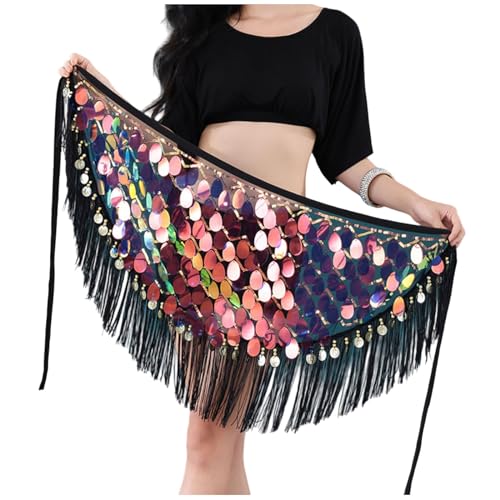 Baisdan Belly Dance Hip Scarf med paljetttofsar, glittrande paljettfranskjol för kvinnor, festivalkläder, rave prestanda tillbehör, Svart, one size