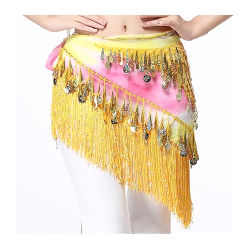 DOBRVVGT Magdans Bälte, Dansbälte Halsduk Kvinnor Belly Dance Kostymer Tillbehör Paljetter Tassel Halsduk Hip Belly Dance Bälte Dans Scarf Bellydance, Yellow With Sequin, L-80CM