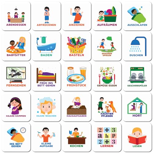 Smarfer – magnetiska piktogram för veckoplaneringstavla – 50 stycken – tyska – för barn – dagprocess – autismplanerare – magneter – rutinuppgifter – belöningstavla