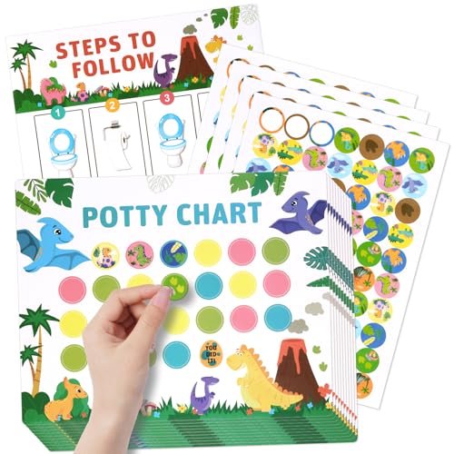 OFFCUP Belöningstavla, potta, belöningstavla, barn, arbetstavla för barn, belöningssystem med 10 dinosaurier belöningstavla och 280 potträning-klistermärken för goda pottvanor