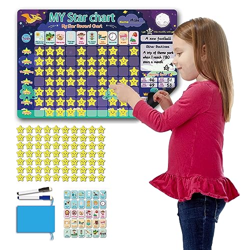 Navaris magnetisk belöning stjärndiagram – belöningstavla veckoplanerare för barn – med penna och 250 färgade stjärnor och aktivitetsmagneter – engelsk