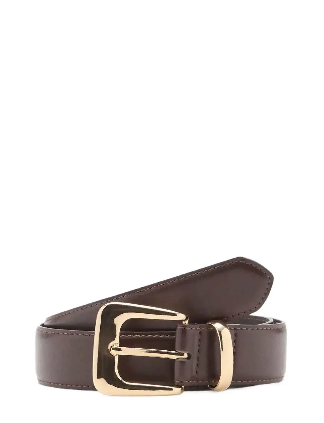 Mango Suede Leather Belt With Engraved Buckle Brun