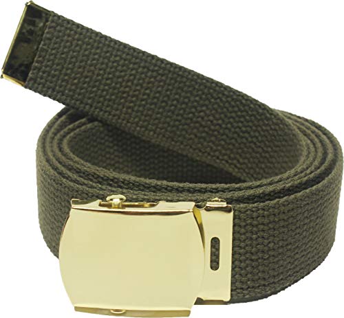Army Universe 100% Cotton Canvas Military Web Belt 54" (Olive Belt - Gold Buckle)
