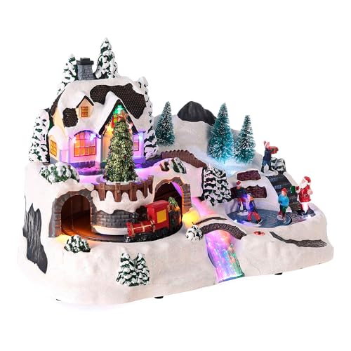 Avilia Animerad julby med LED-belysning och julmusik - Perfekt för att dekorera ditt hem på ett unikt och modernt sätt - Tillverkad av hållbara material – 31 x 38 x 22 cm