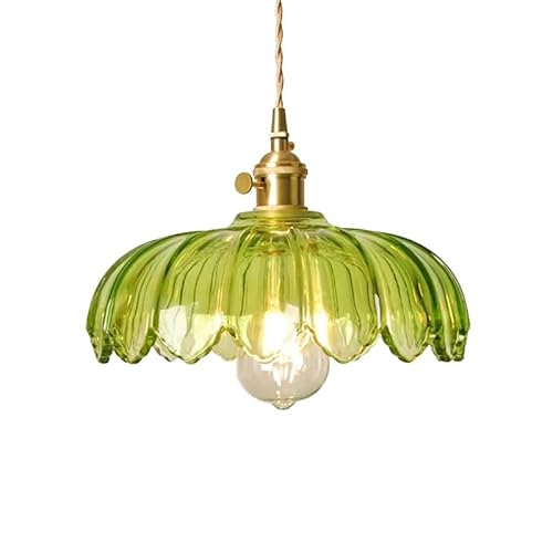 Elinkume Ljuskrona i glas hängande lampor, vintage lampor för köksö, grön blomma hängande skugga litet ljus för sovrum hotell matsal