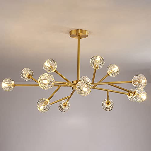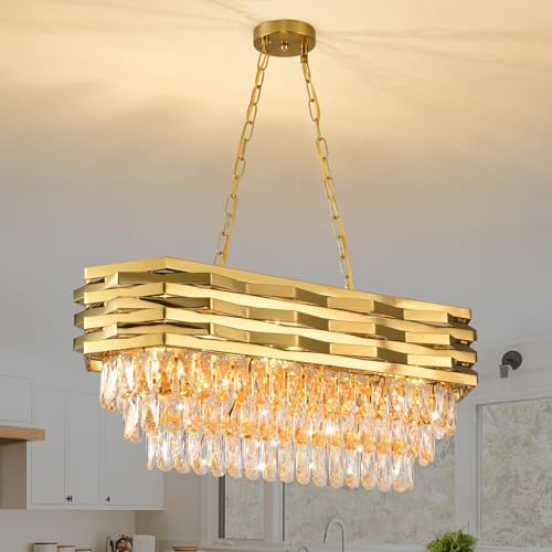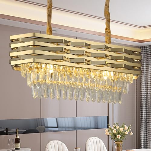 MORATER Modern guld linjär sputnik ljuskrona mitten av århundradet industriell rektangel kristallkrona hänge taklampa fixtur köksö matsal ljuskrona hängande belysning (15 huvuden)