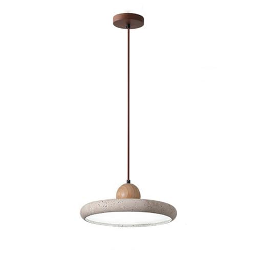 RXPVUXE Wabi Sabi Natursten Pendelljus Rund LED Gul Cave Stone Pendelljus Nordic Wood Ljuskrona Köksö, 28W japansk stil Gul travertin takhängande lampor