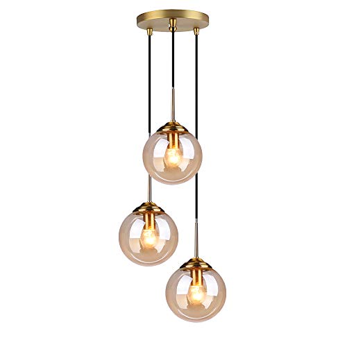 HJXDtech Industriell vintage 3 lampor pendellampa, glasglob 3 hängen taklampa, mässing E27 hängande lampa kluster över köksö och matsalsbord (bärnsten)