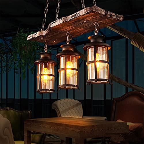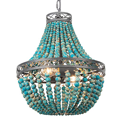 FIRVRE 3 lampor Bohemian Bohemian Träpärlor Naturlig Taklampa E27 Loft Franska Country Antique Taklampa Taklampa Taklampa för sovrum Köksö Matrum Vardagsrum Vardagsrum (blå-1)