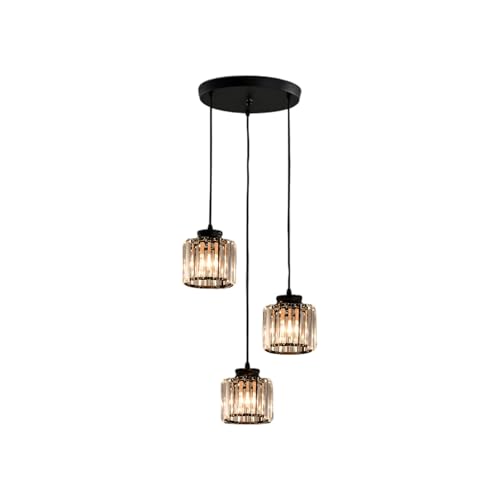 Cainjiazh Kristall taklampor runda tak,Moderna kristallkronor hängande ljusarmatur för köksö,Justerbar ljuskrona för matsal,foajé,vardagsrum entré svart 3 lampor taklampa kristallkrona ljuskrona