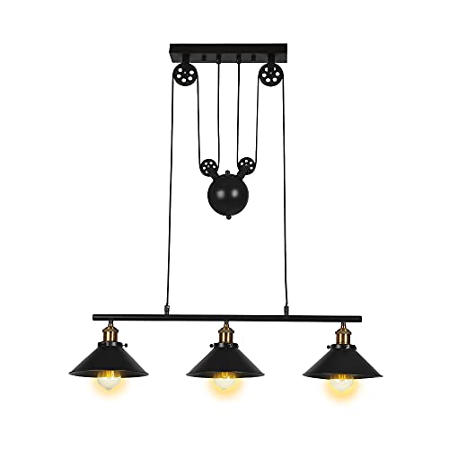 Tre-ljus remskiva hängande lampa, köksö ljus justerbar industriell rustik ljuskrona bondgård vintage taklampor armatur för köksö matsal foajé